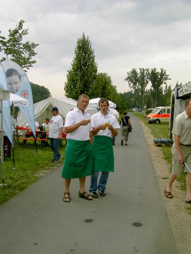1. Vors. des Weinbauvereins Rainer Thaler und sein Stellvertreter stärken sich.