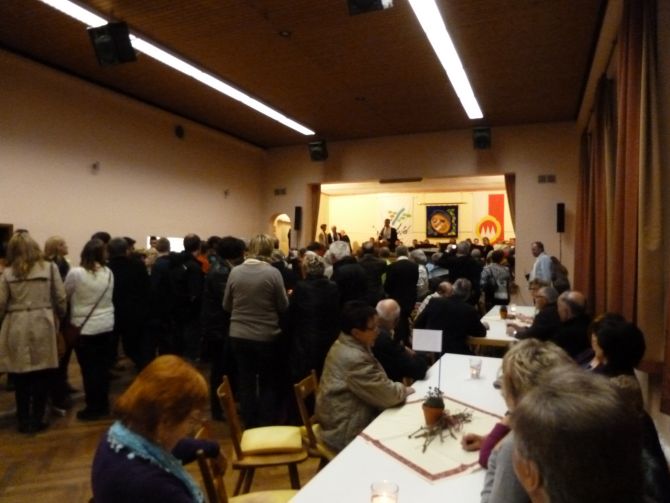 Empfang und Feier am Wahlabend im Sportheimsaal in Wipfeld